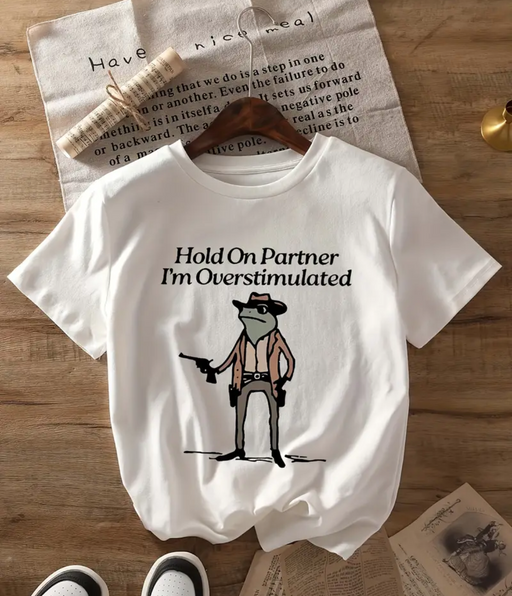 Original price $24.99 - Original price $24.99Original price$24.99$24.99 - $24.99Current price $24.99Hold On Partner I'm Overstimulated Frog T-Shirt